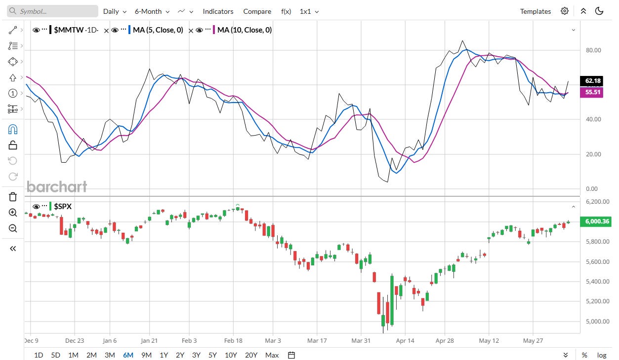 Market breadth is trending higher and has crossed above its 5-day moving average—a reliable risk-on signal for swing traders.