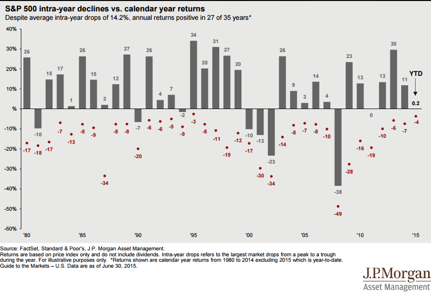 Over the last 35 years, the average intra-year decline in the SP500 is roughly 14%, a little less since 2009. Despite the 14% intra-year decline, the SP500 has closed positive 27 out of the 35 years, 77% of the time.