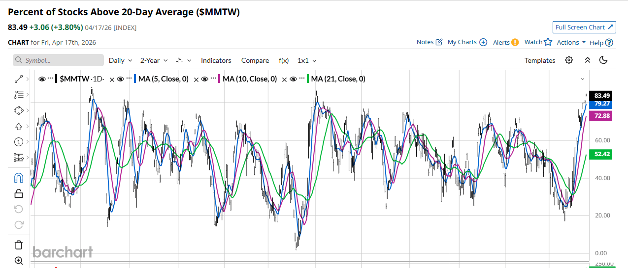 Breadth is now at nosebleed levels that more than likely lead to a small pause rather than further upside.