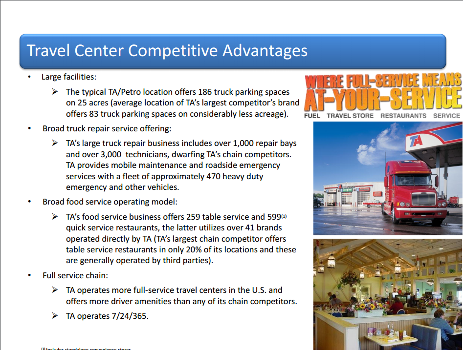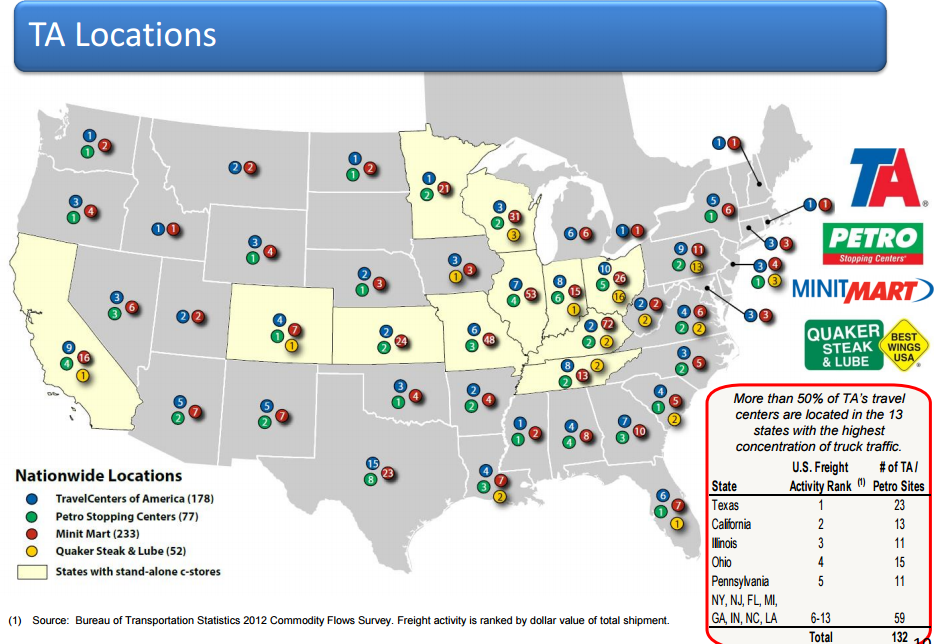 The Travel Centers group operates 750 restaurants (popeyes, subway, etc.) and food outlets and 52 standalone restaurants