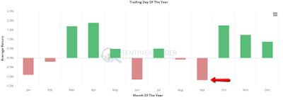 It’s no secret that the month of September historically has been a bad month for stocks. With information so accessible nowadays investors have something to worry about every day, nothing slips by social media and blog quota driven sites. However, the data is enticing enough to write about it. The charts below tell you all you need to know.