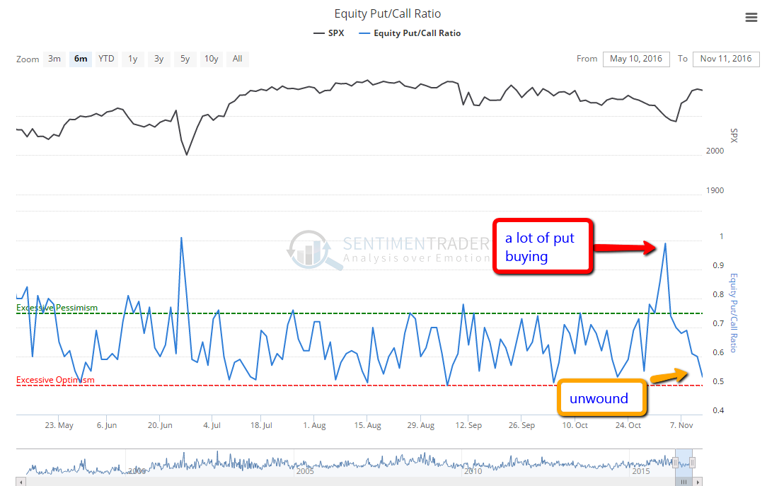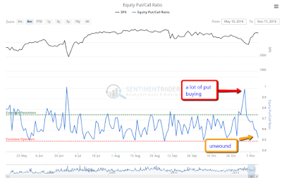 Leading up to the elections there was a lot of put buying, and one can argue that many were caught off guard on the short side and then were forced to cover.
