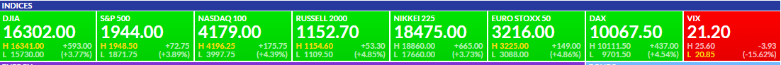 If you wanted an out, then the market is giving you a gift today.  Dow futures are up 600 points and the 1987 crash callers are now changing their tune.  We are not out the woods yet, the reaction we see today is an example of what the market does; it goes up AND down, not up OR down. Nothing goes down in a straight line or up in a straight line.  A lot of people panicked at the open, sold and lost some real money. These will be the same people that will shy away from the market for a long time because they felt robbed, violated, etc..  But the real story is that they did not have a plan. Instead, they followed the word of a blogger or bloggers that have no idea what their particular needs are.