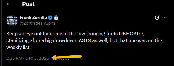 On December 3rd, I posted that OKLO and ASTS were stabilizing after deep drawdowns.
