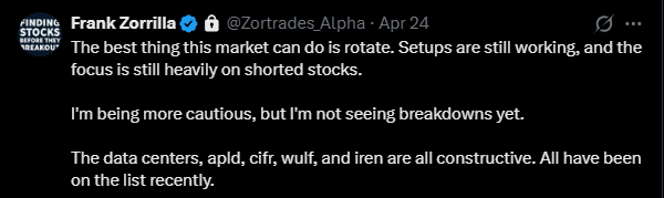 Setups are still working. Not many stocks are breaking down. But the environment has shifted, and I’m treating it accordingly.