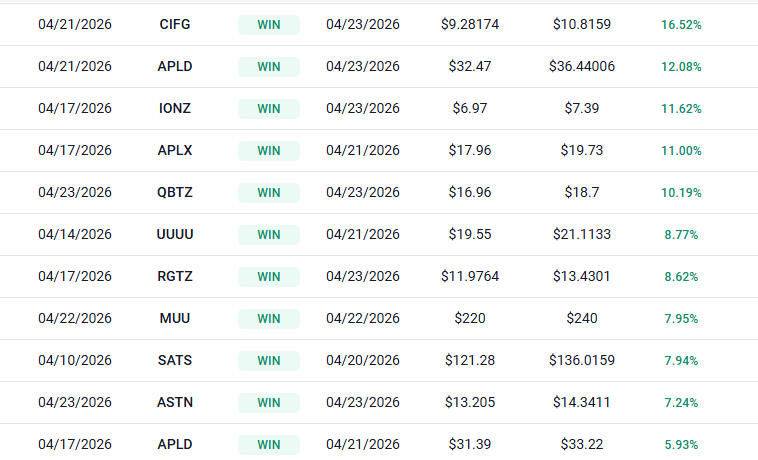 Data centers — APLD, CIFR, WULF, IREN — all constructive. All have been on the list recently.
