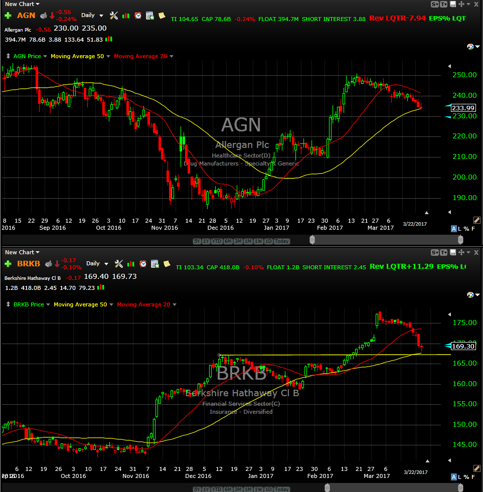 $AGN and $BRK.B two stocks down multiple days in a row that are down to potential support levels, I have an interest in both stocks if they can get through yesterday’s high.