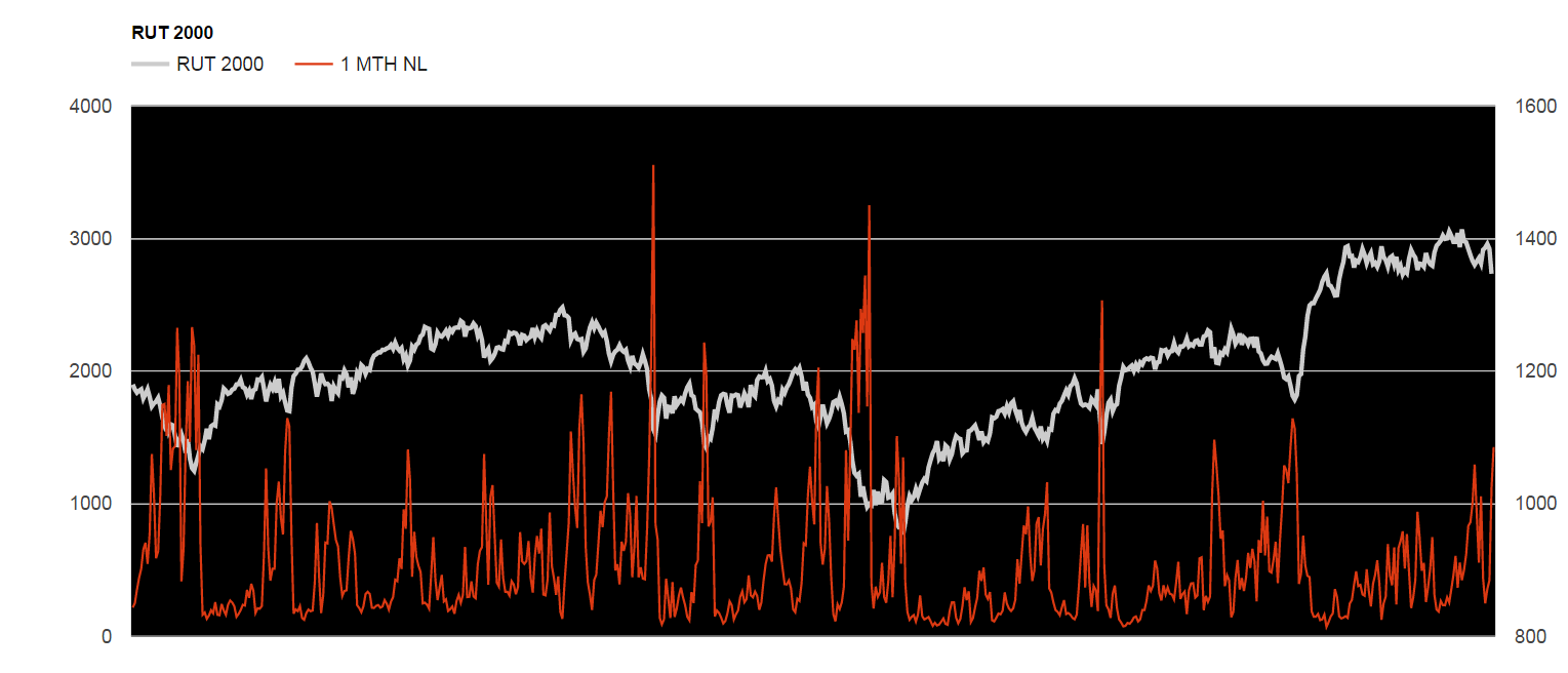 Typically, spikes in 1-month lows lead to short term bounces that are followed by a lower low on the indices.