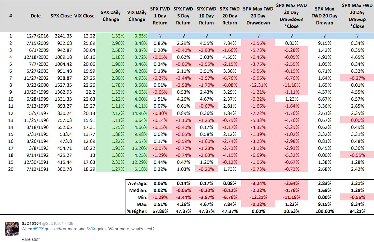 When SP500 gains 1% or more and VIX gains 3% or more. HT @SJD10304