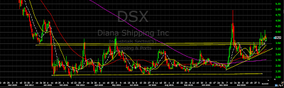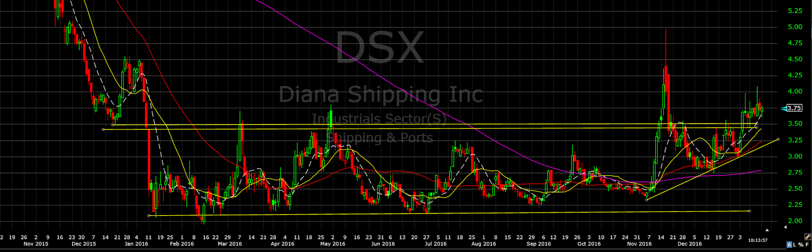 That’s exactly what is happening with $DSX, it has been going sideways for a year and now you see a pattern of higher lows. Very simply, the buyers are no longer waiting to buy the stock near the bottom of the base, they want it now, they see greener pastures ahead.