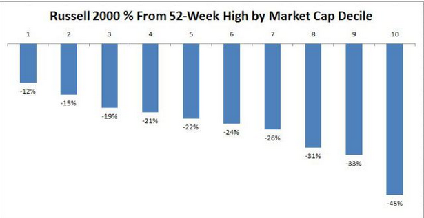 Internally the market has been dying slowly, the lower the price, the lower the market capitalization, the bigger the hit. h/t Michael Batnick