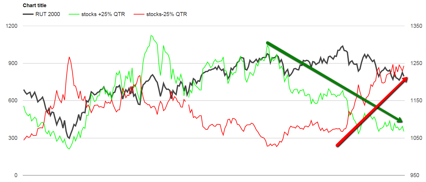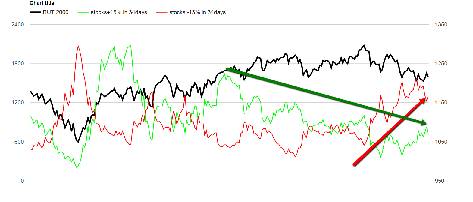 Russell 2000 versus stocks up or down 13% or more in the last 34 days.