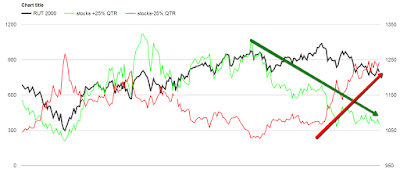 Russell 2000 versus stocks up or down 25% or more in the last 65 days.