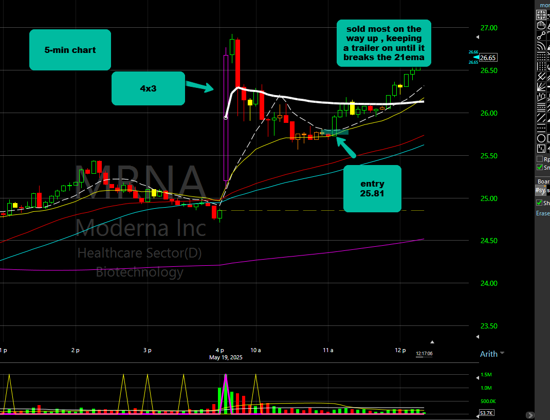 After a clean NVAX trade, we ran it back the same day with $MRNA. This time, the principle was the same, but the structure was different.