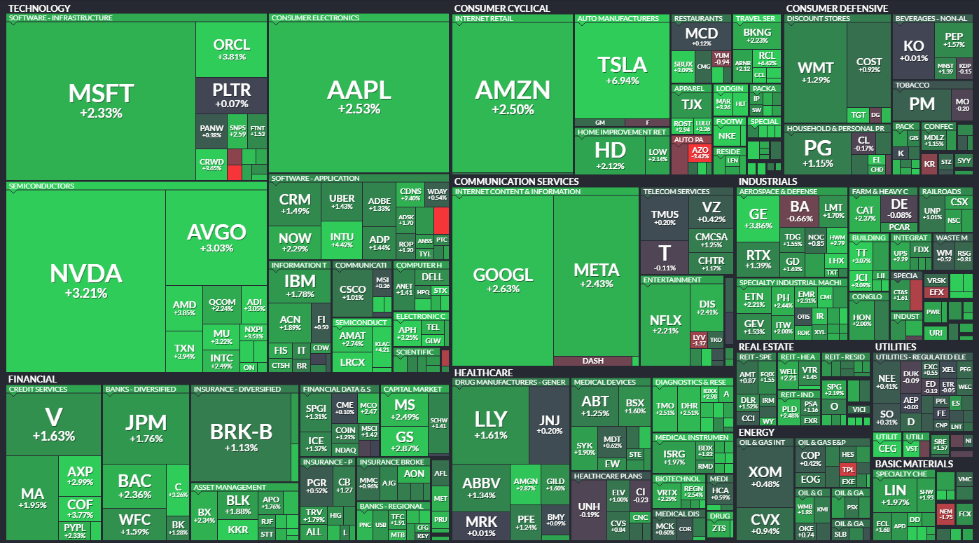 Tech was the engine—$TSLA +7%, $NVDA ran ahead of earnings. EU Tariff delay to July 9 gave the market breathing room. Risk appetite returned.