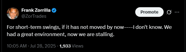 From June 23rd to July 15th, the market gave us one of the cleanest windows of opportunity we’ve had in a while. Breadth was strong, volatility was low, and the tape rewarded risk. You could size up with confidence. But just like that — the rhythm changed.