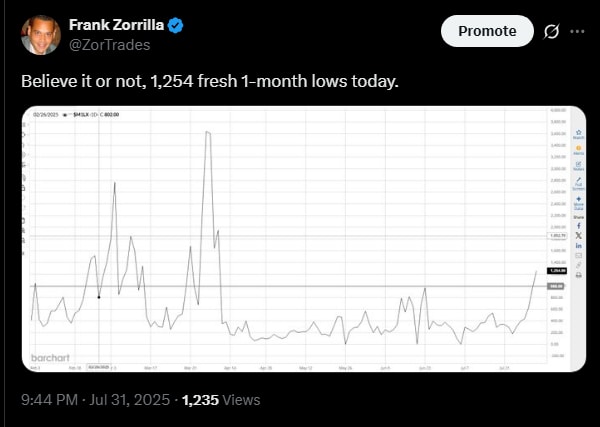Meanwhile, the number of fresh 1-month lows hit 1,254 — and almost nobody was talking about it.