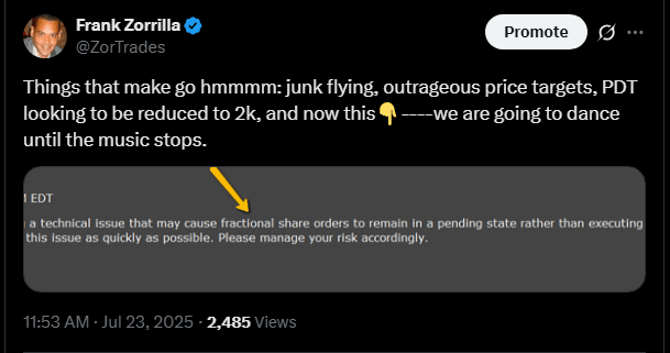 On July 23rd, Interactive Brokers flagged a technical issue: fractional orders were being delayed. That may seem like a minor hiccup, but fractional trading is primarily a phenomenon driven by retail flows.