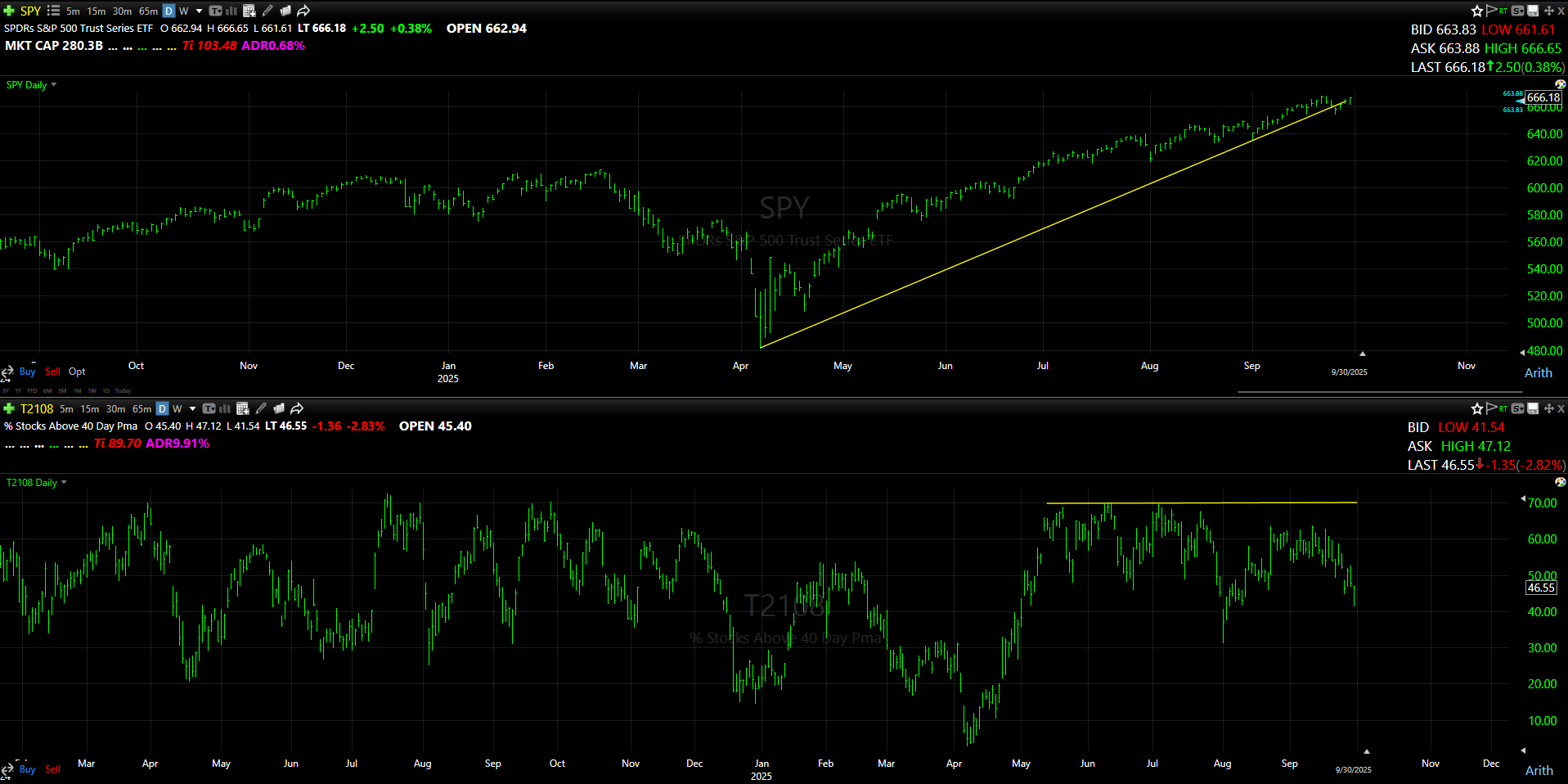 📊 SPY vs. Stocks Above Their 40-Day Moving Average