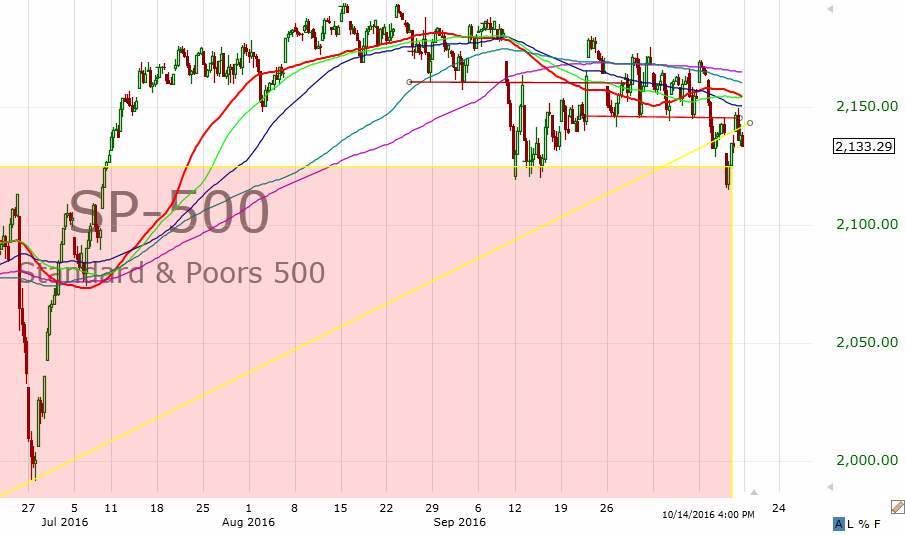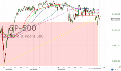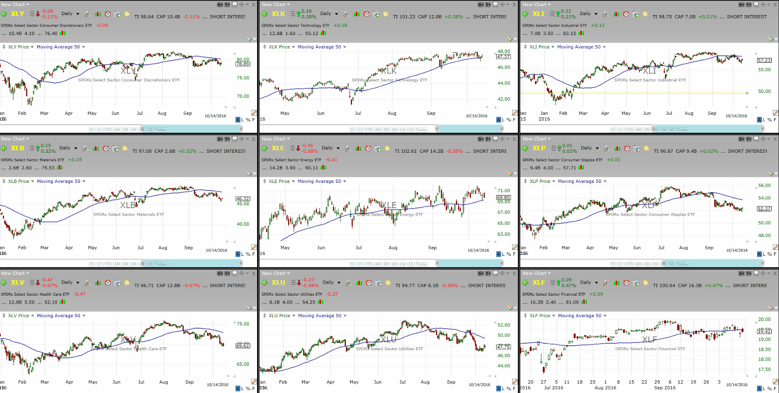 On 7/8/2016 the SP500 closed at 2,129.72 and on Friday it closed at 2,133.29. On 7/8/16 Eight of the nine S&P sectors were above their respective 50-day moving average, today only two are above.
