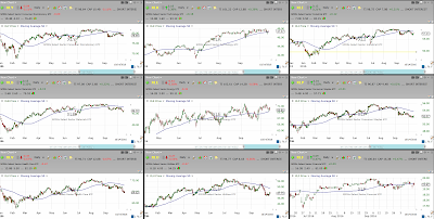 On a quarterly basis, AGG and TIP are stronger than SPY and DIA. The SP500, DJ-30, QQQ, IWM, Nasdaq Composite, MDY, are all a shade below their respective 50-day moving average.