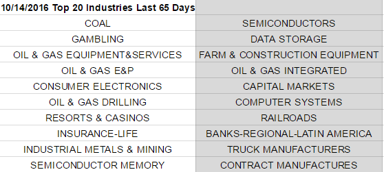 As you can see below, the top 20 industries based on relative strength of the last 65-days is being dominated by the energy sector.