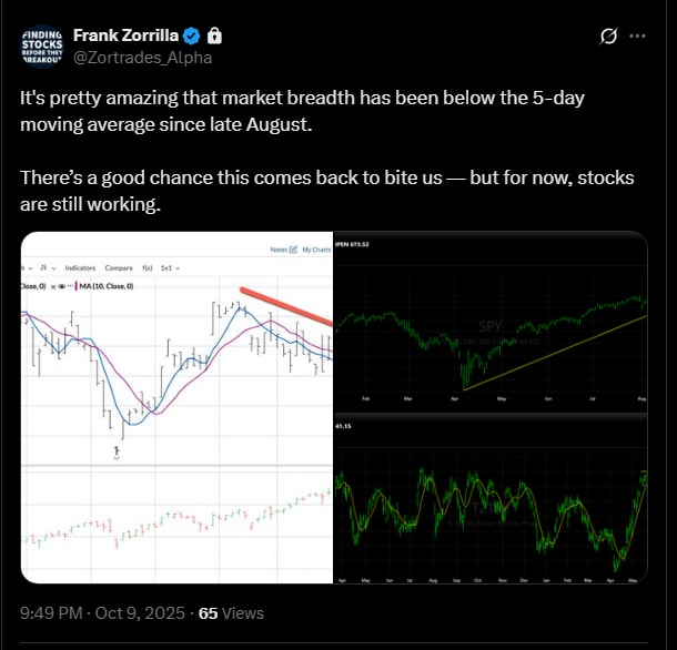 • Indices kept grinding higher — the “market of stocks” quietly diverging from the “stock market.”