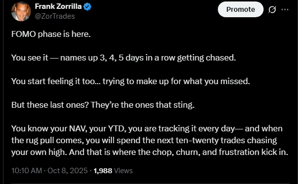 • FOMO was in full swing: names up 3, 4, 5 days in a row were being chased.
